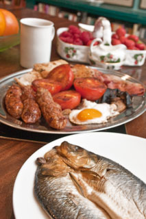 Bacon, Sausages, eggs (boiled, fried, poached or